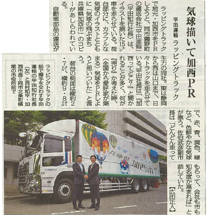 【兵庫県加西市の運送会社☺平田運輸のブログ】今日は神戸新聞様に掲載していただきました!