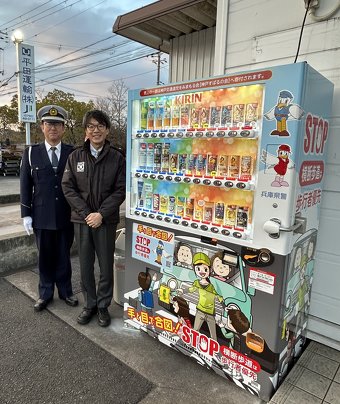 こちらの自販機は交通安全啓発として、兵庫県警察様と