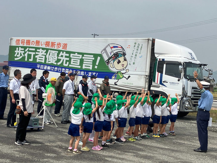 私たち平田運輸は、2021年より兵庫県警の「横断歩道 歩行者優先宣言」に参画しています。
