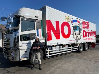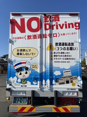 ボディに大きく描かれた「NO飲酒Driving」の文字が